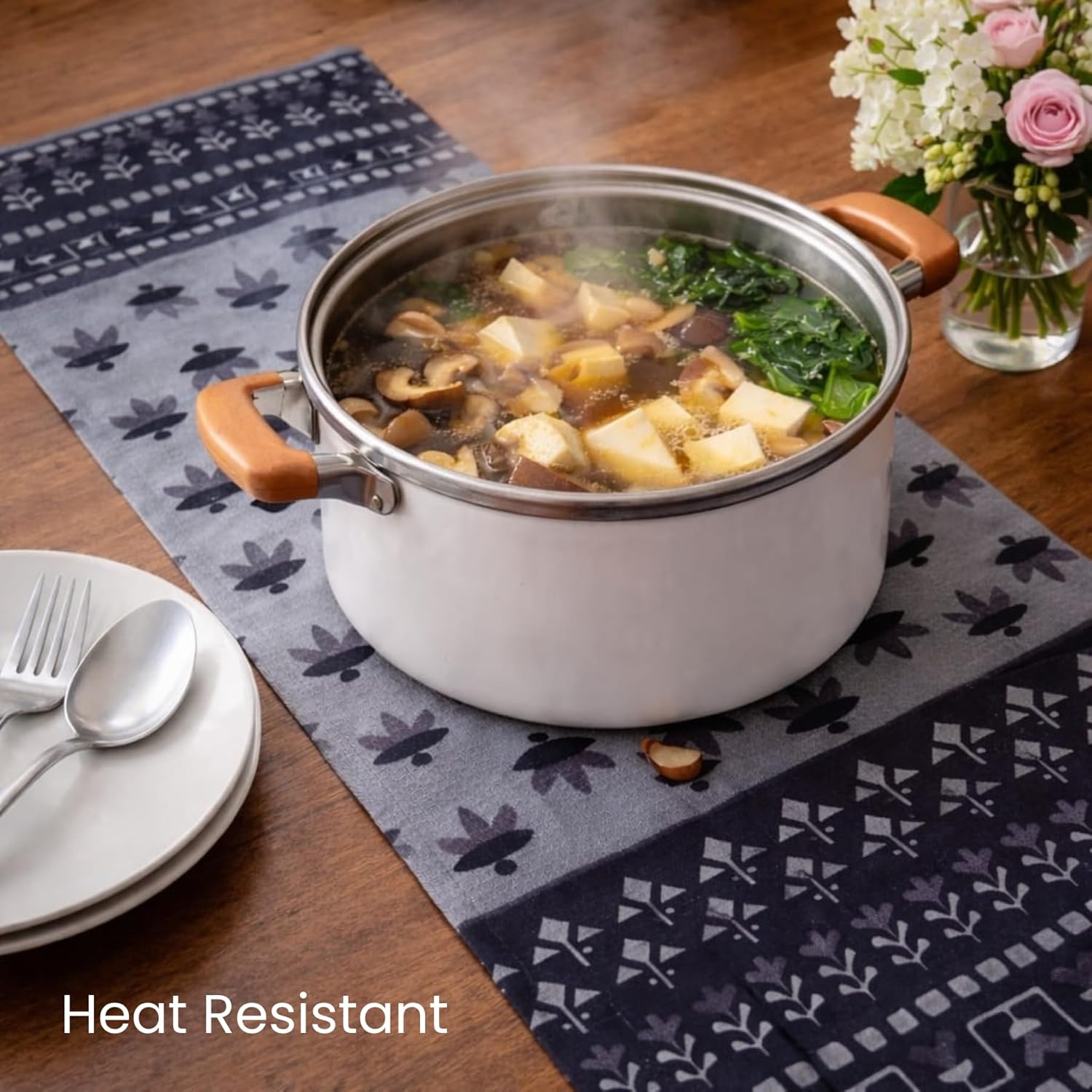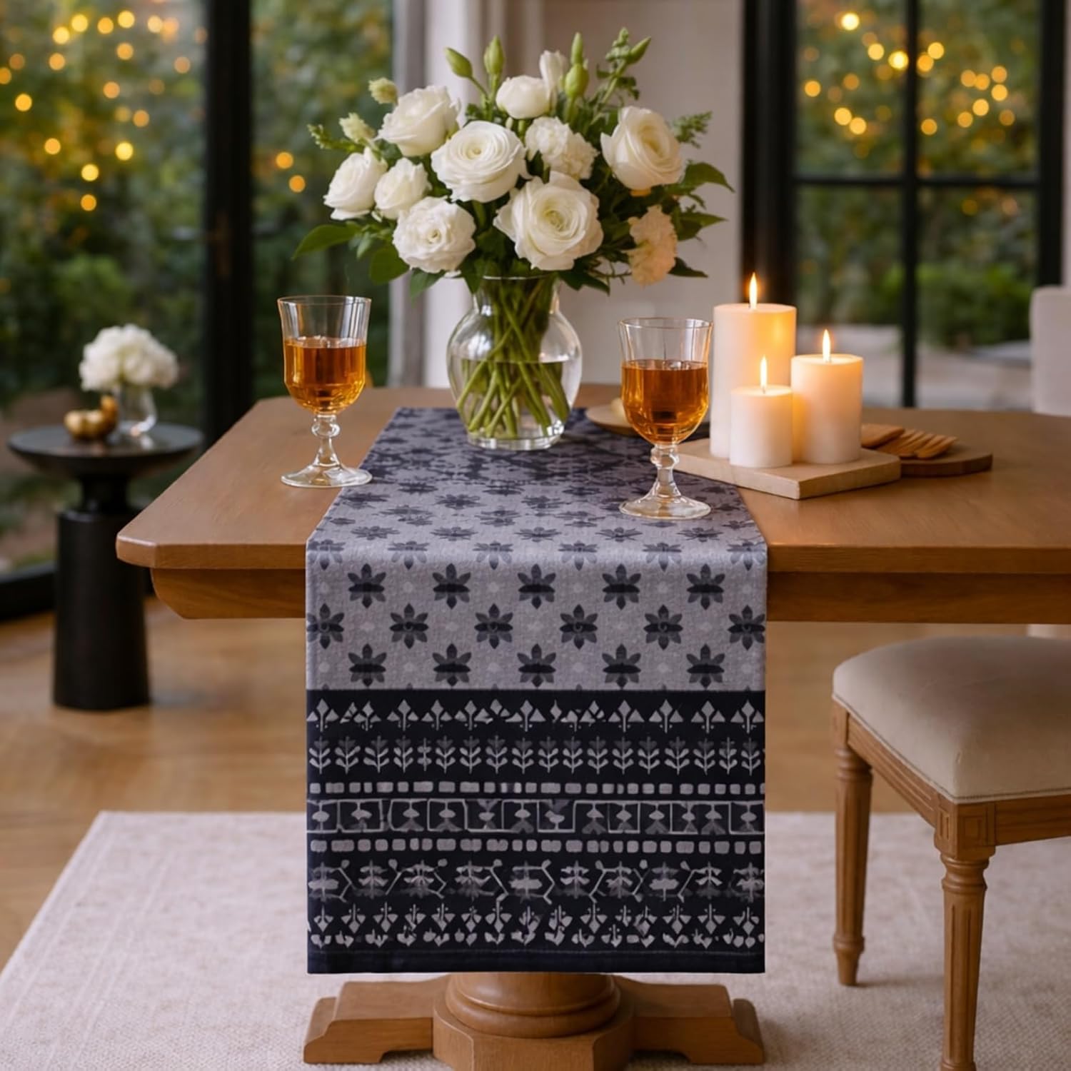 Whether styled on a dining table for intimate gatherings, layered on a coffee table with curated décor accents, placed on a console for statement impact, or used on a bedside surface for boutique hotel aesthetics — this multipurpose runner enhances every setting effortlessly.