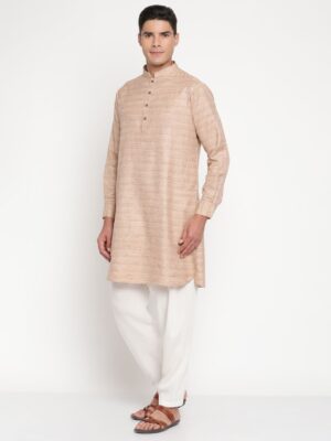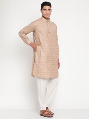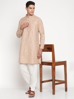 Bring timeless tradition to your wardrobe with our Beige Cotton Kurta for Men. Crafted from lightweight, high-quality cotton, this kurta ensures all-day comfort while maintaining a sophisticated appearance.