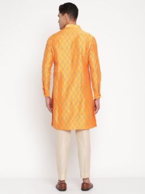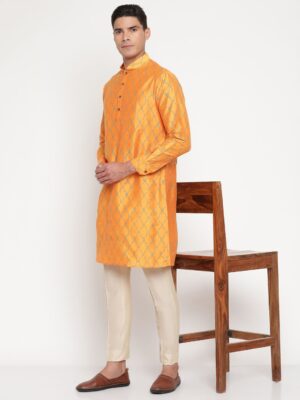 Step into timeless elegance with this Men’s Orange Silk Kurta from Yellow Muslin by Niharika Pandey. Designed for the modern man who cherishes traditional Indian craftsmanship, this kurta exudes radiant sophistication.