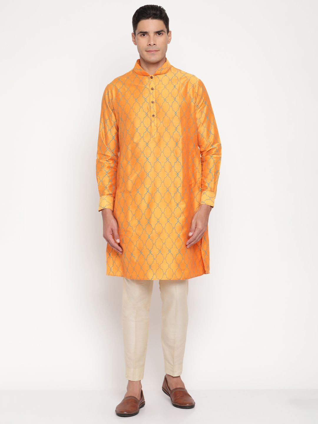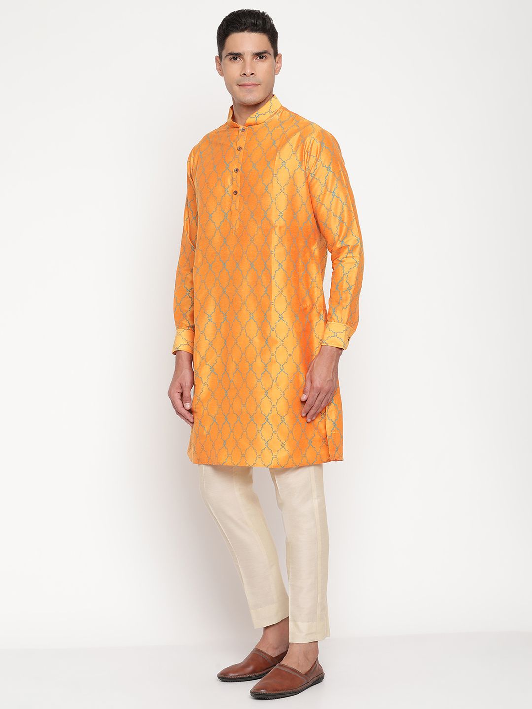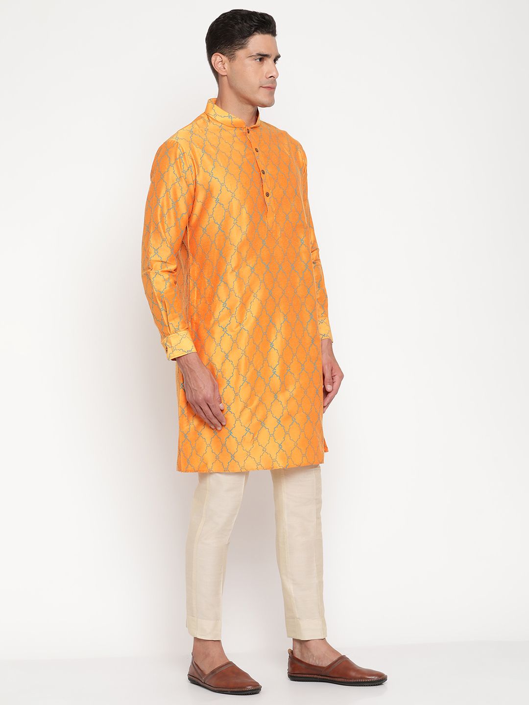 Step into timeless elegance with this Men’s Orange Silk Kurta from Yellow Muslin by Niharika Pandey. Designed for the modern man who cherishes traditional Indian craftsmanship, this kurta exudes radiant sophistication.