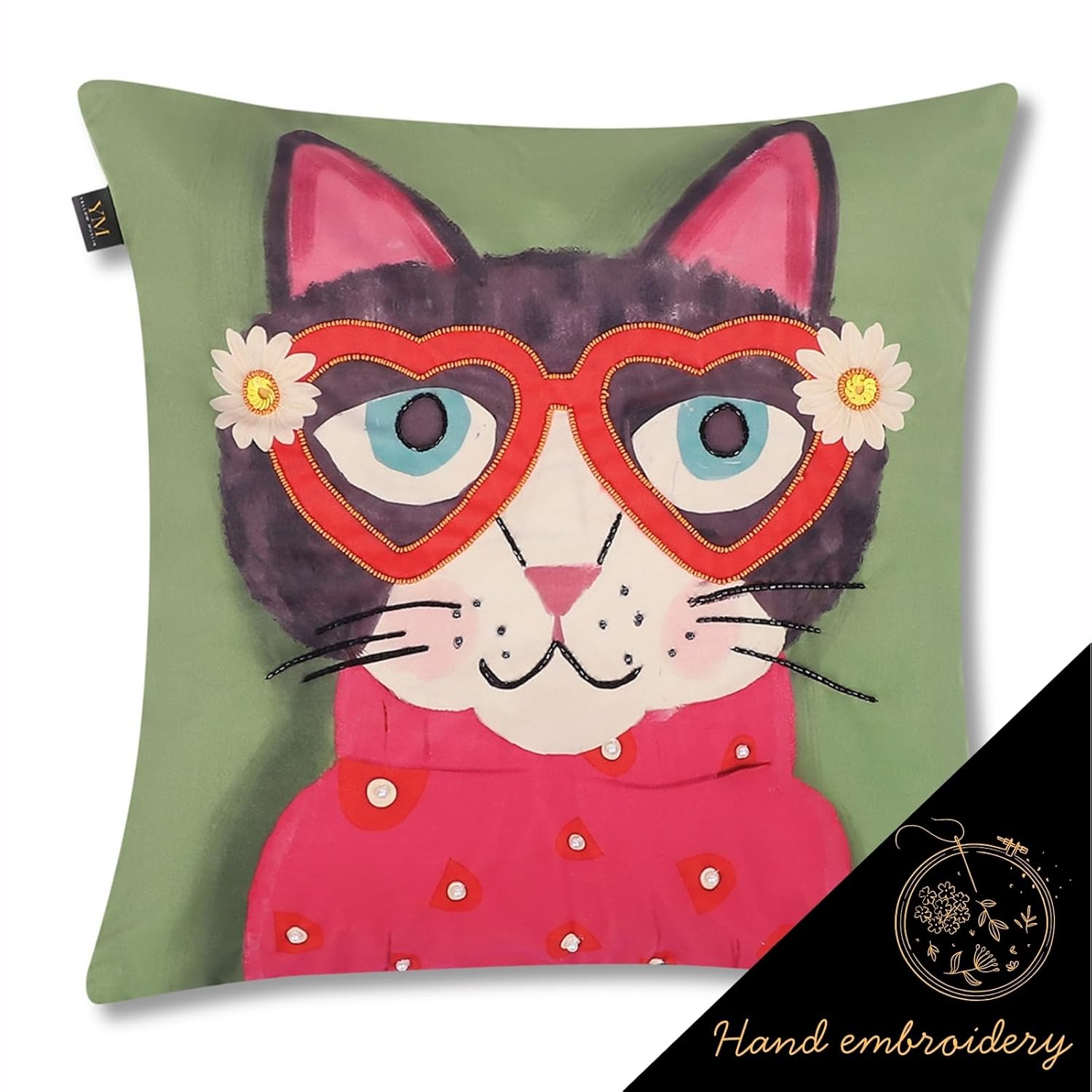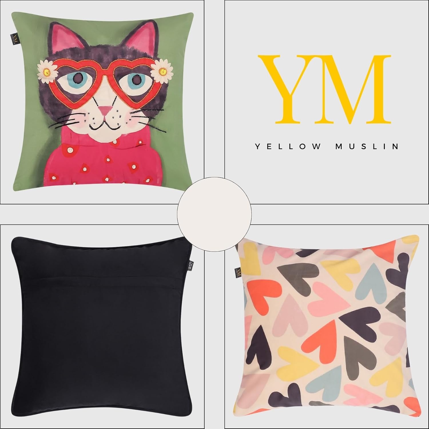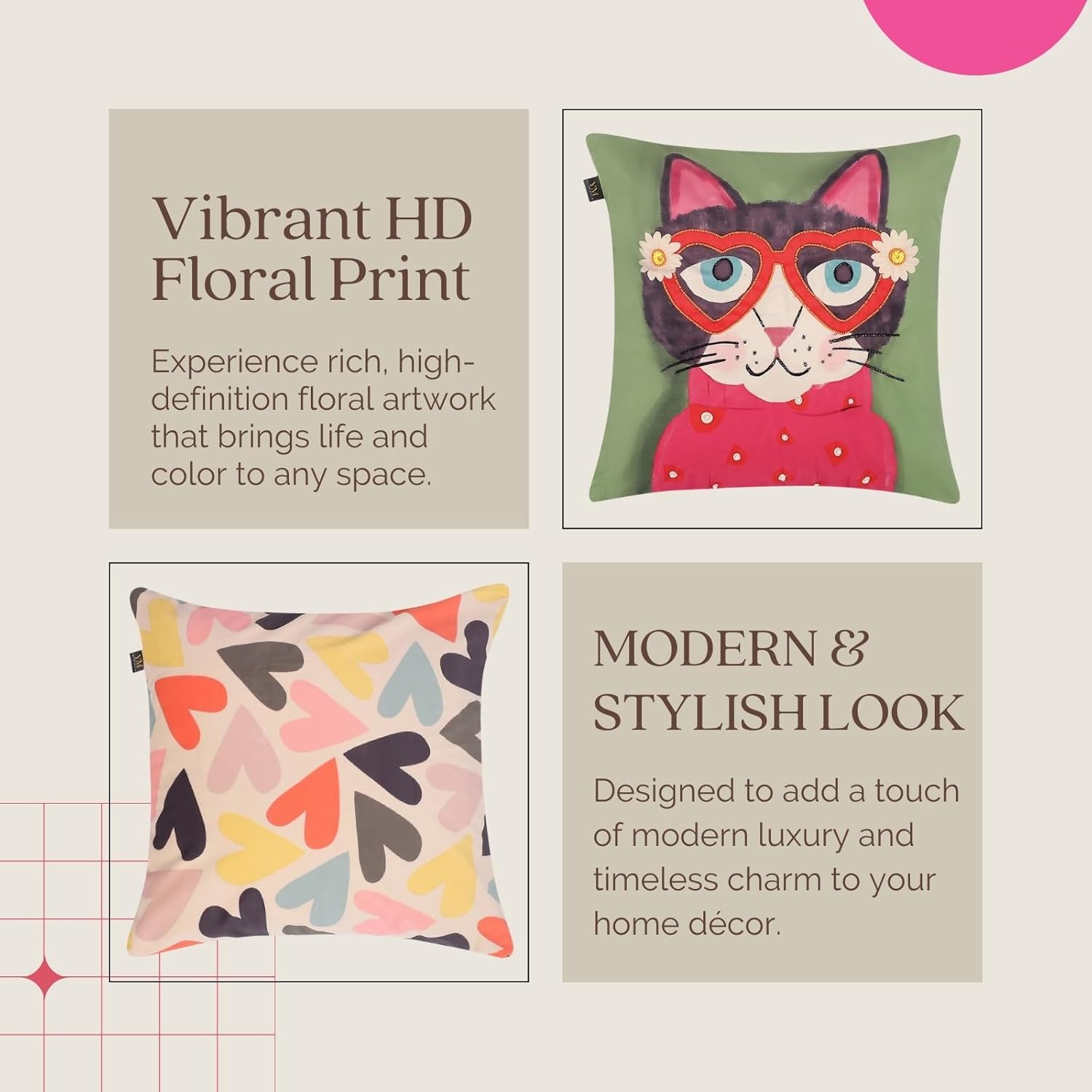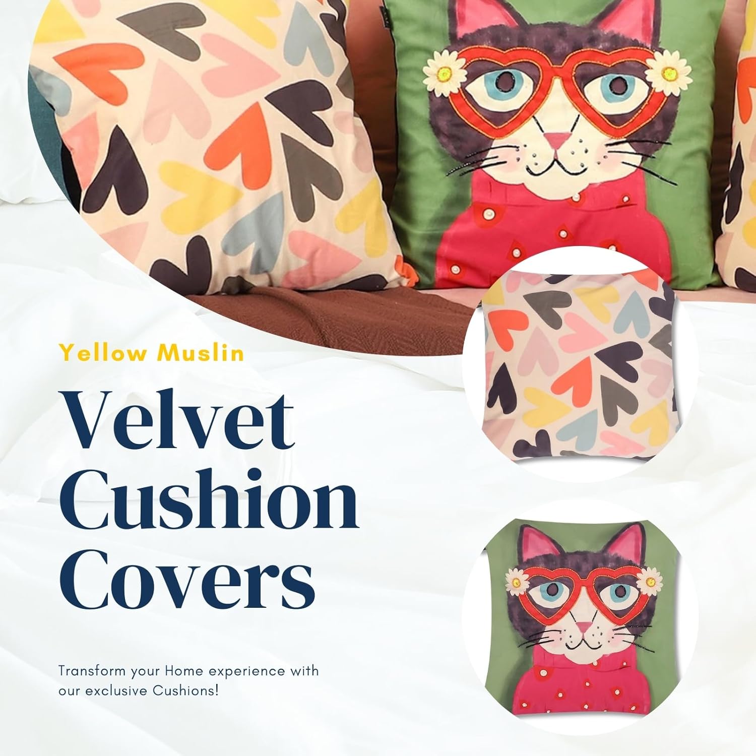 Add a playful decorative touch to your interiors with these Premium Velvet Cushion Covers – Set of 3 featuring a quirky kitty heart design. Created for expressive and fun styling, these decorative throw pillowcases bring personality and charm to sofas, couches, beds, and chairs.
