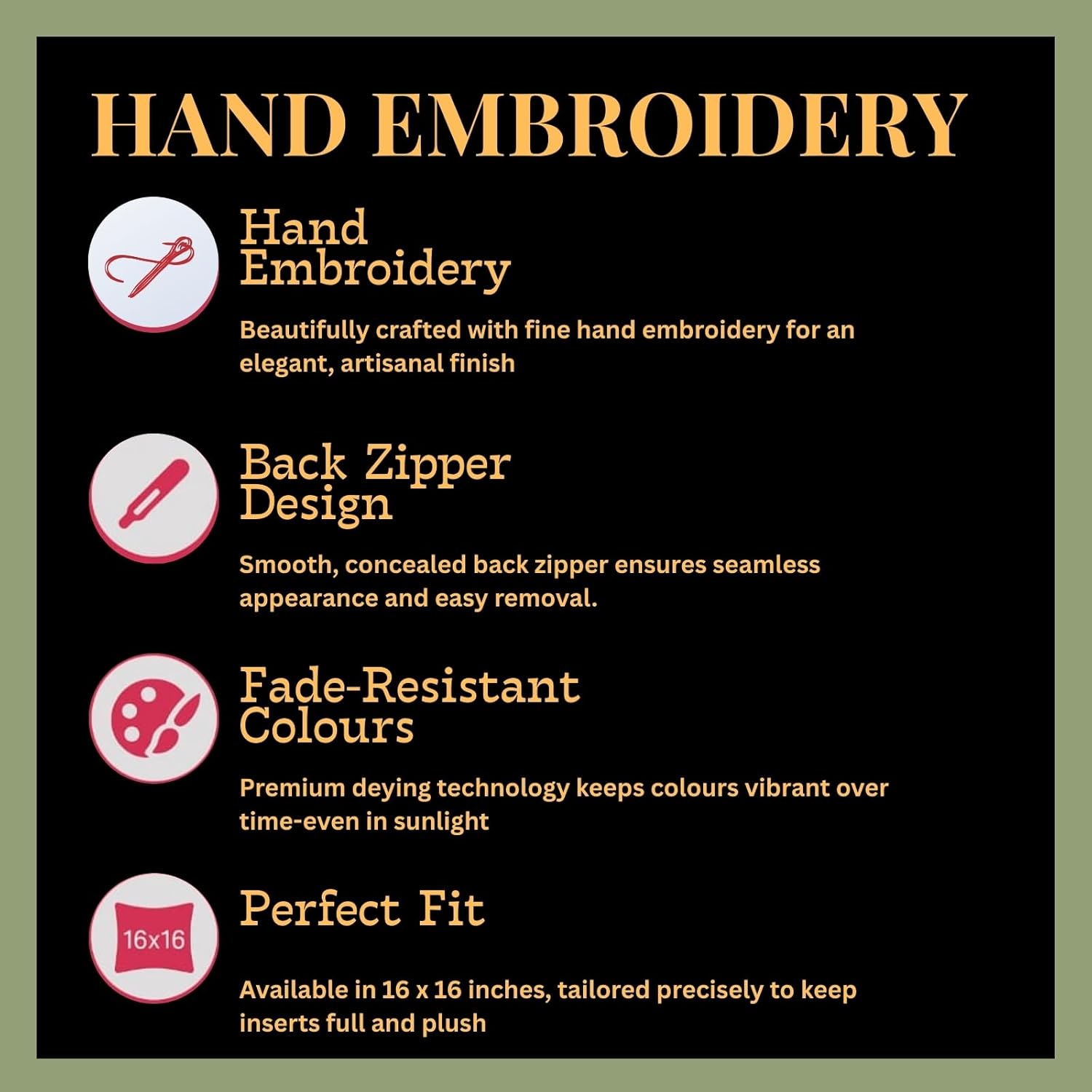 Each cushion cover measures 16×16 inches, making them suitable for standard inserts and easy layering with other décor cushions. The velvet fabric offers a soft surface feel and a rich visual finish. Designed for regular décor use, these pillow covers are built to be durable and fade-resistant while maintaining their printed look.