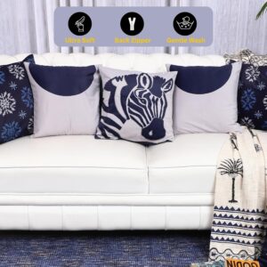 Premium Velvet Decorative Cushion Covers Set of 5 – Blue and Grey 16×16 Inch Throw Pillowcases