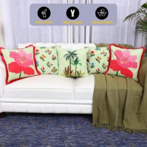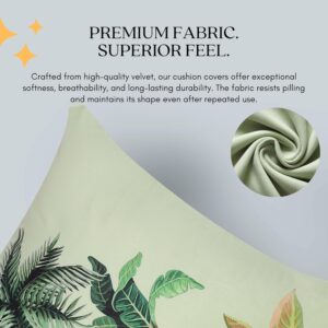 Refresh your home décor with this Velvet Cushion Covers Set of 5 designed for elegant and cozy interior styling. Featuring a Green Palm pattern, these decorative throw pillowcases add a nature-inspired accent to sofas, couches, beds, and chairs.