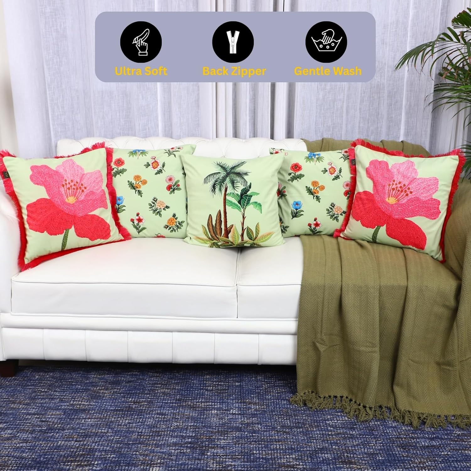Ideal for living rooms and bedrooms, this 5-piece cushion cover set helps create a coordinated and polished decorative setup.