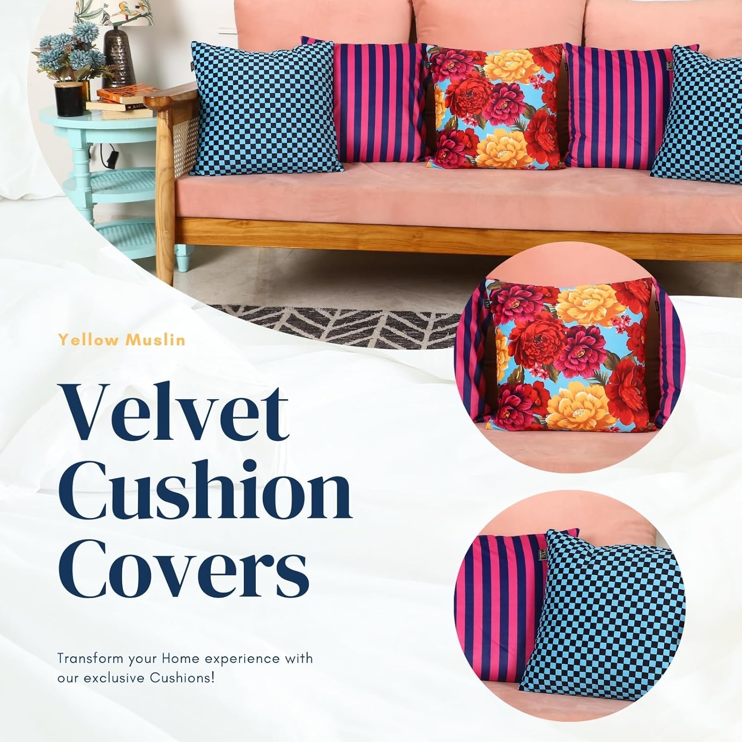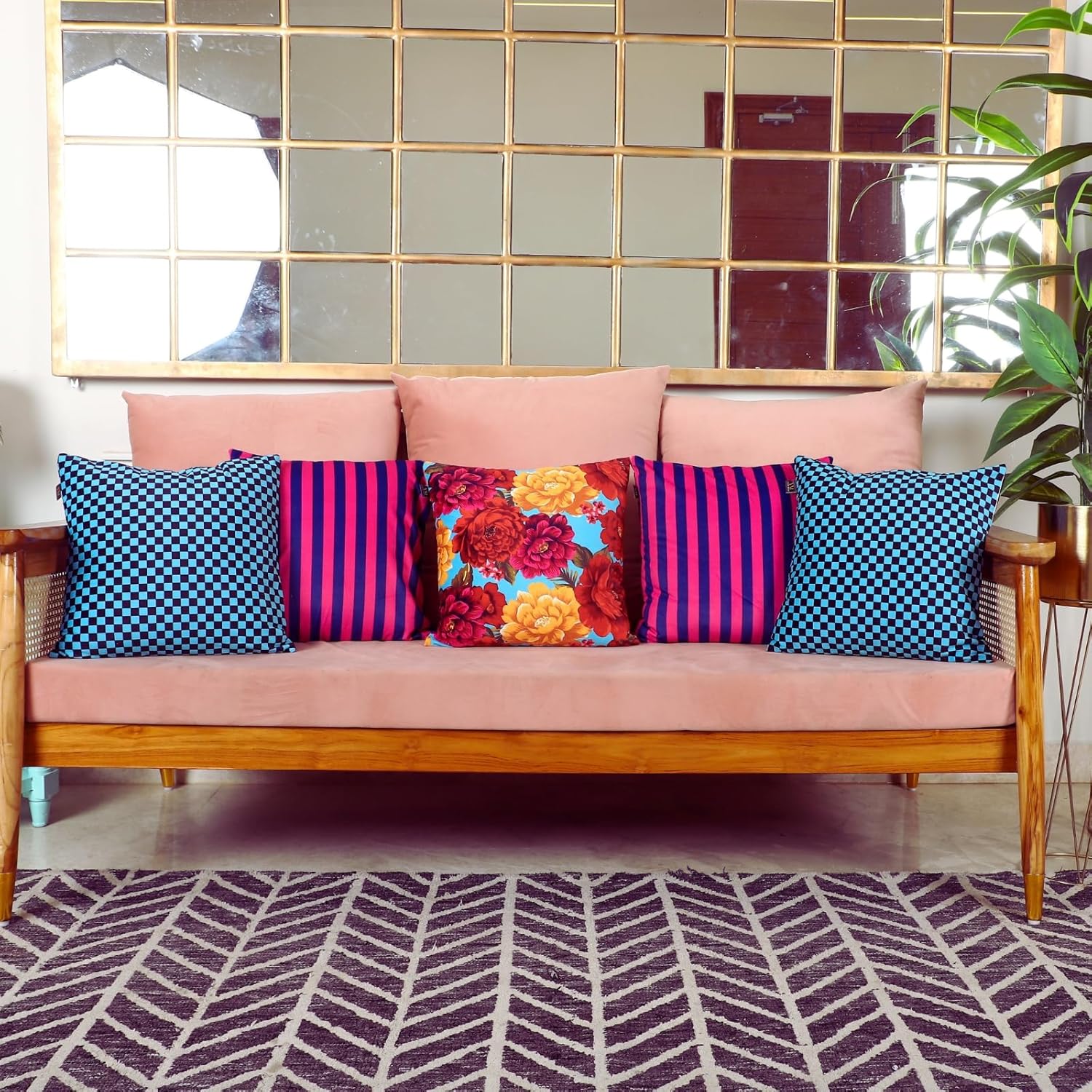 Ideal for living rooms and bedrooms, this 5-piece cushion cover set helps create a colorful and polished décor arrangement.