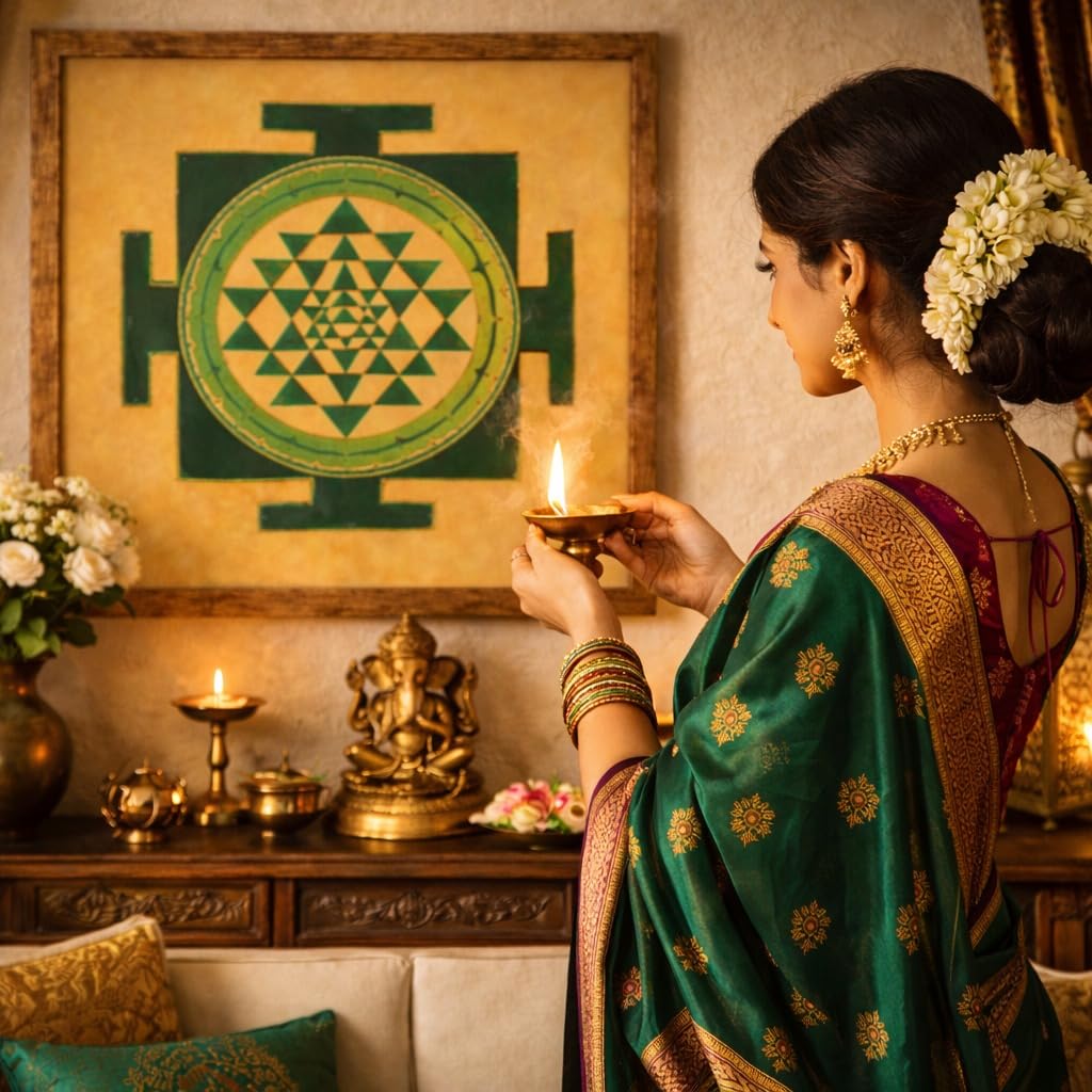 - Hand-Embroidered Shri Yantra: Each piece is meticulously hand-stitched, showcasing detailed artistry and unique craftsmanship on premium velvet.