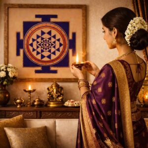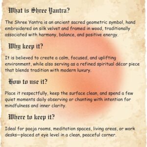 - Hand-Embroidered Shri Yantra: Meticulously stitched by skilled artisans, each piece showcases detailed craftsmanship and intricate design on plush velvet.