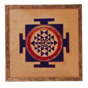 Each Shri Yantra wall art is hand-embroidered, so minor variations in embroidery and color are natural, highlighting the uniqueness of each piece. Handle with care to maintain fabric and frame quality.