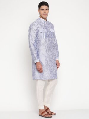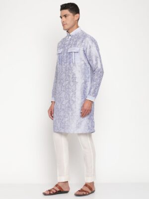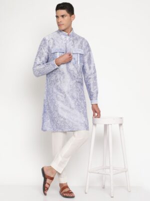 Can be paired with crisp white pajama pants, this kurta pajama set is versatile enough for weddings, receptions, festive events, and cultural ceremonies.