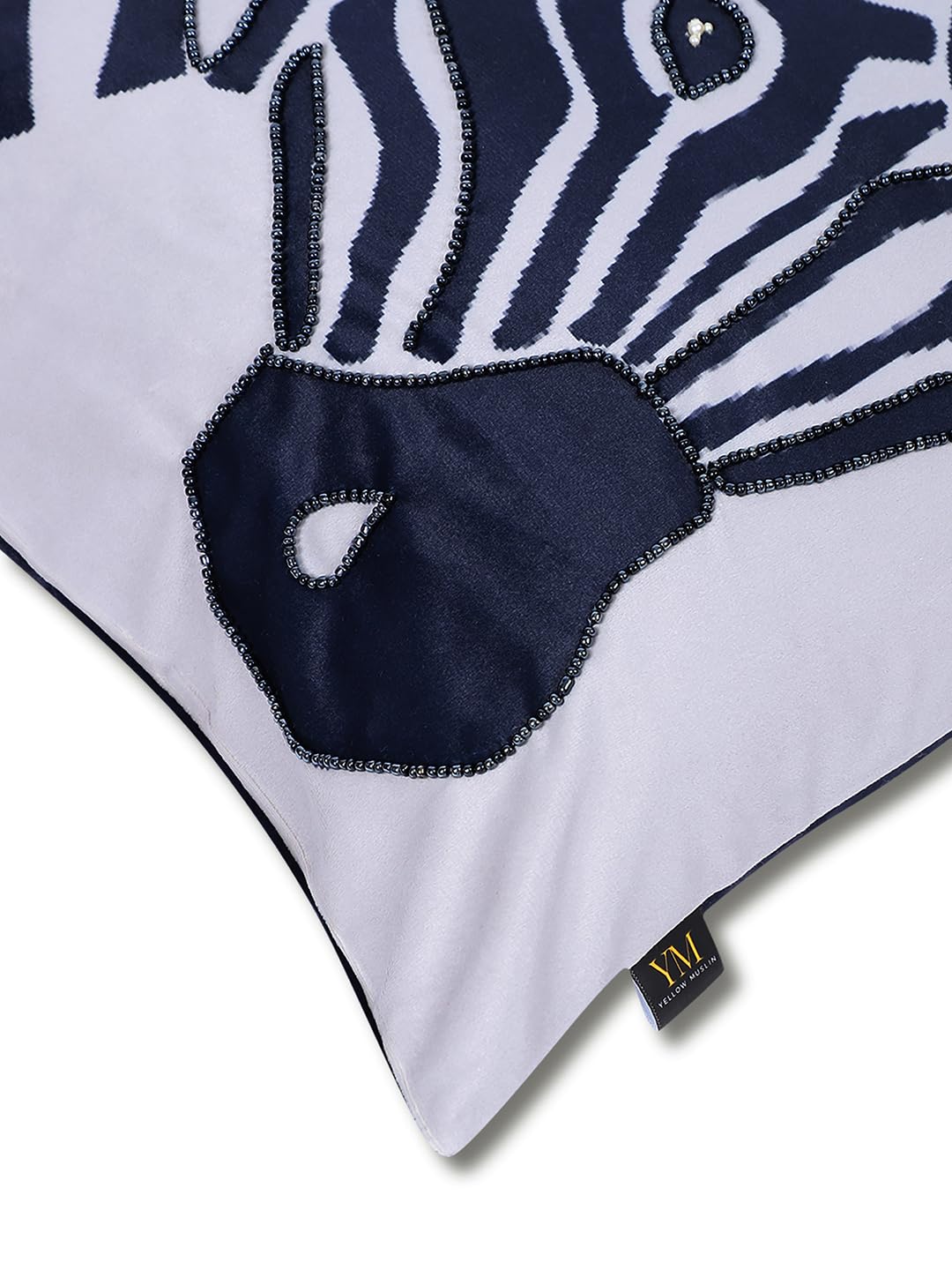 Enhance your home with the Yellow Muslin Premium Velvet Decorative Throw Pillow Covers — a set of 5 hand-embroidered cushion covers in sophisticated navy blue and grey. Designed for both style and comfort, these 16×16 inch covers add a touch of artisanal charm and luxury to sofas, beds, chairs, or window seats.